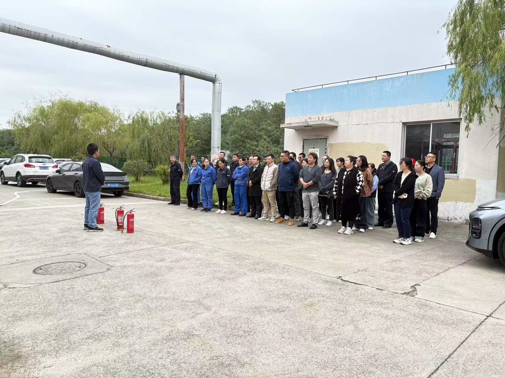 在清点好人员后,由生产主管刘贤朋详细为大家讲解火灾发生时的自救常识与安全疏散的注意事项,详细介绍消防器材的使用方法,现场演示如何使用干粉灭火器灭火,并组织职工进行灭火实操演练。